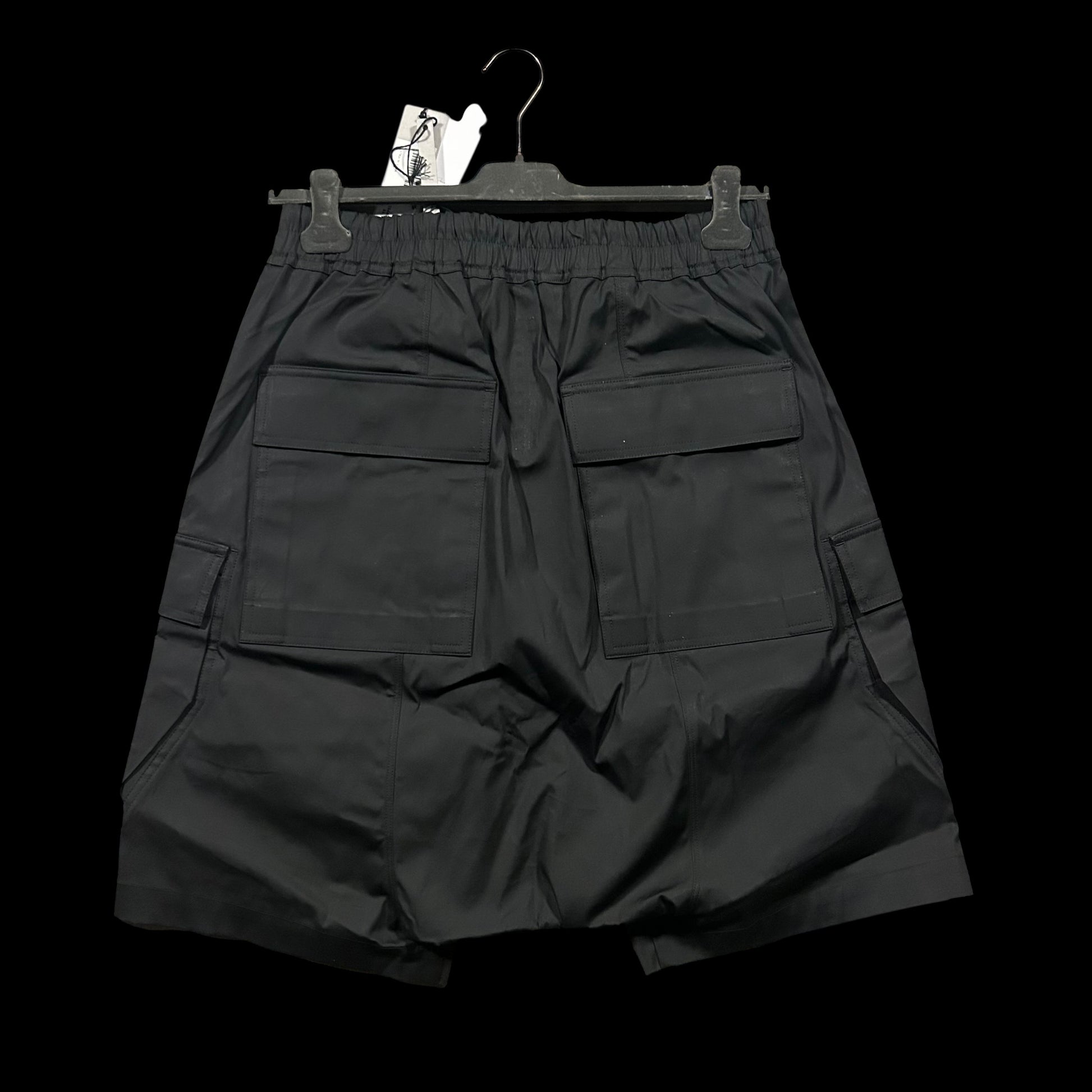 Crafted from a crisp black cotton blend, they feature an exaggerated rise, oversized cargo pockets with grommet vents, and rear flap pockets for added utility. The concealed button fly is secured with 100% buffalo horn buttons, a subtle nod to Owens’ commitment to premium detailing. These are a functional yet elevated staple—cut for movement, built for statement.